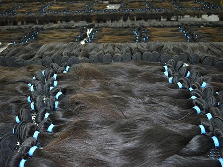 The Blue rubber band hair (Brazilian raw hair) is the top tier hair in KBL. Our raw material is gathered donor hair from young girls. 1bundle is cut from one donor.